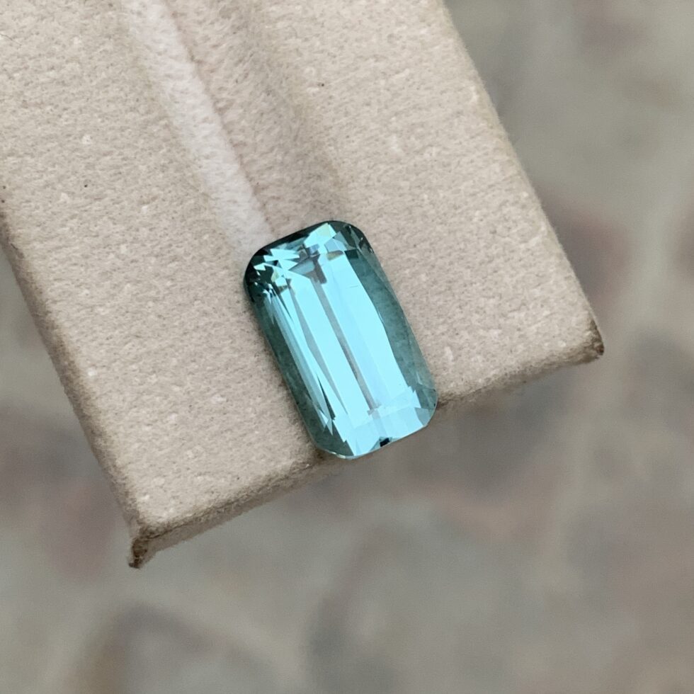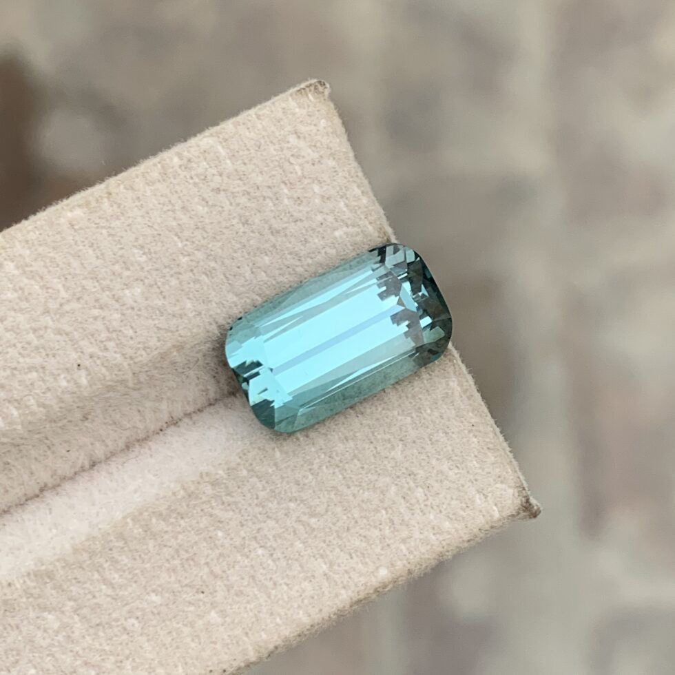 Add a touch of elegance to your collection with this Pale Blue cushion-cut natural tourmaline. Featuring a rich, vibrant hue and expertly faceted in a classic cushion shape, this gemstone captures and reflects light beautifully from every angle. Mined from natural sources and untreated, its earthy green tones make it an ideal centerpiece for both vintage and modern jewelry styles.