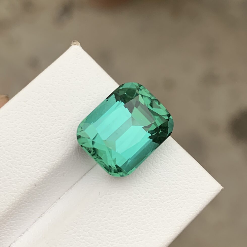 Natural Bluish Green Cushion Cut Tourmaline from Afghanistan